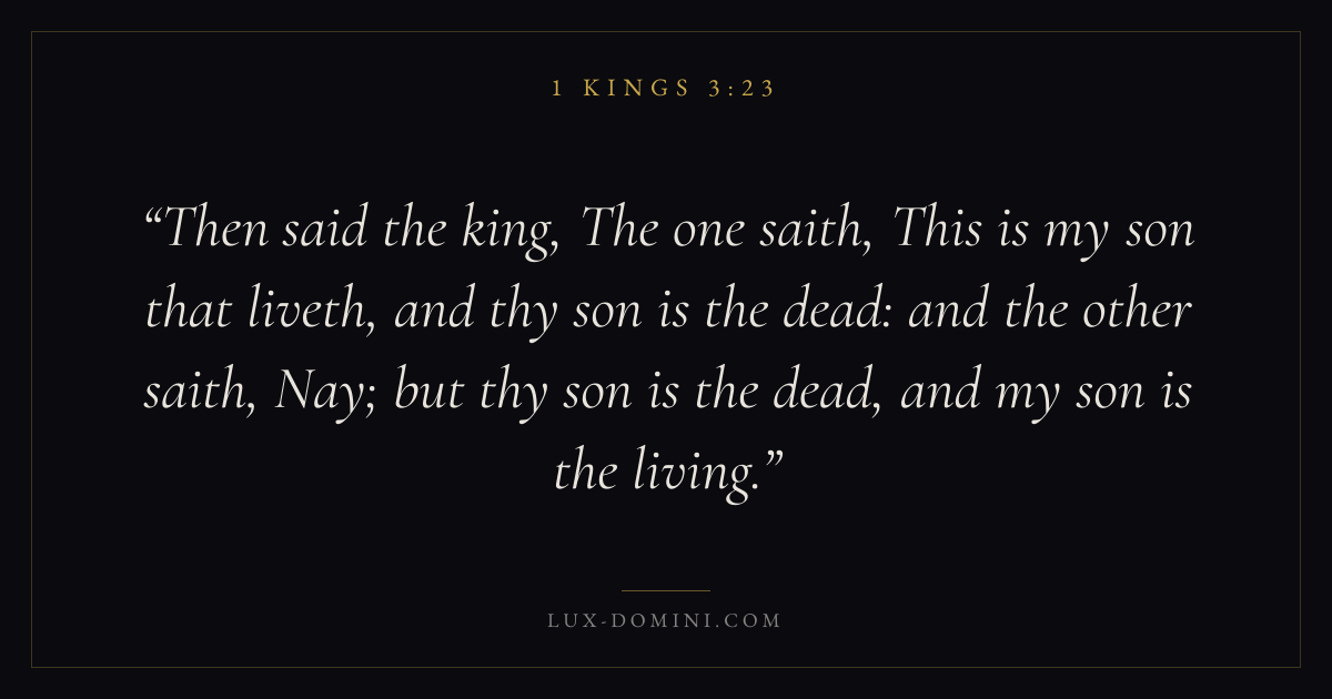 Then said the king, The one saith, This is my son that liveth, and thy son is the dead: and the other saith, Nay; but thy son is the dead, and my son is the living.