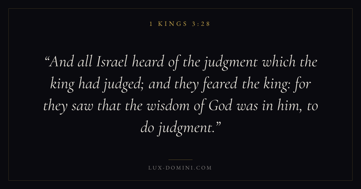 And all Israel heard of the judgment which the king had judged; and they feared the king: for they saw that the wisdom of God was in him, to do judgment.