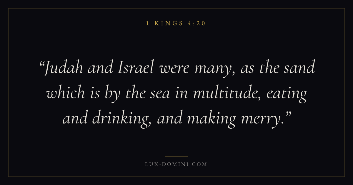 Judah and Israel were many, as the sand which is by the sea in multitude, eating and drinking, and making merry.