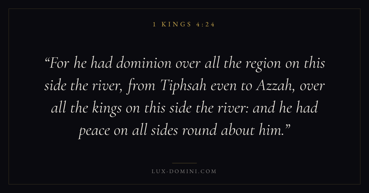 For he had dominion over all the region on this side the river, from Tiphsah even to Azzah, over all the kings on this side the river: and he had peace on all sides round about him.