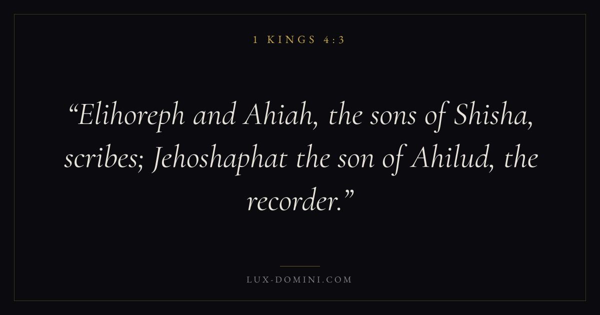 Elihoreph and Ahiah, the sons of Shisha, scribes; Jehoshaphat the son of Ahilud, the recorder.