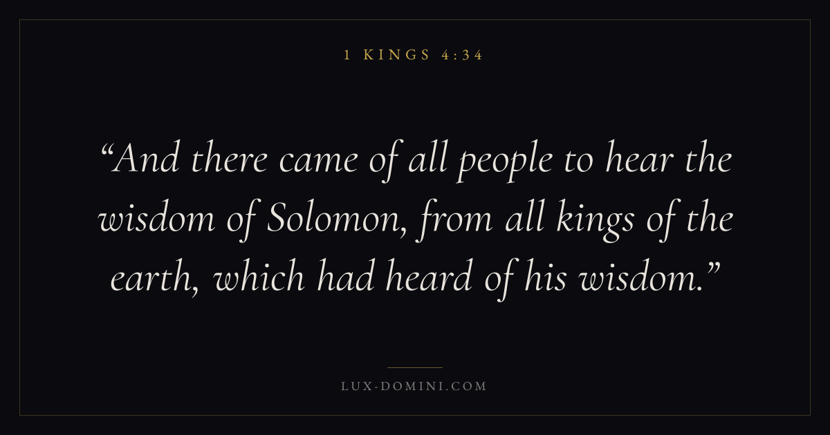 And there came of all people to hear the wisdom of Solomon, from all kings of the earth, which had heard of his wisdom.
