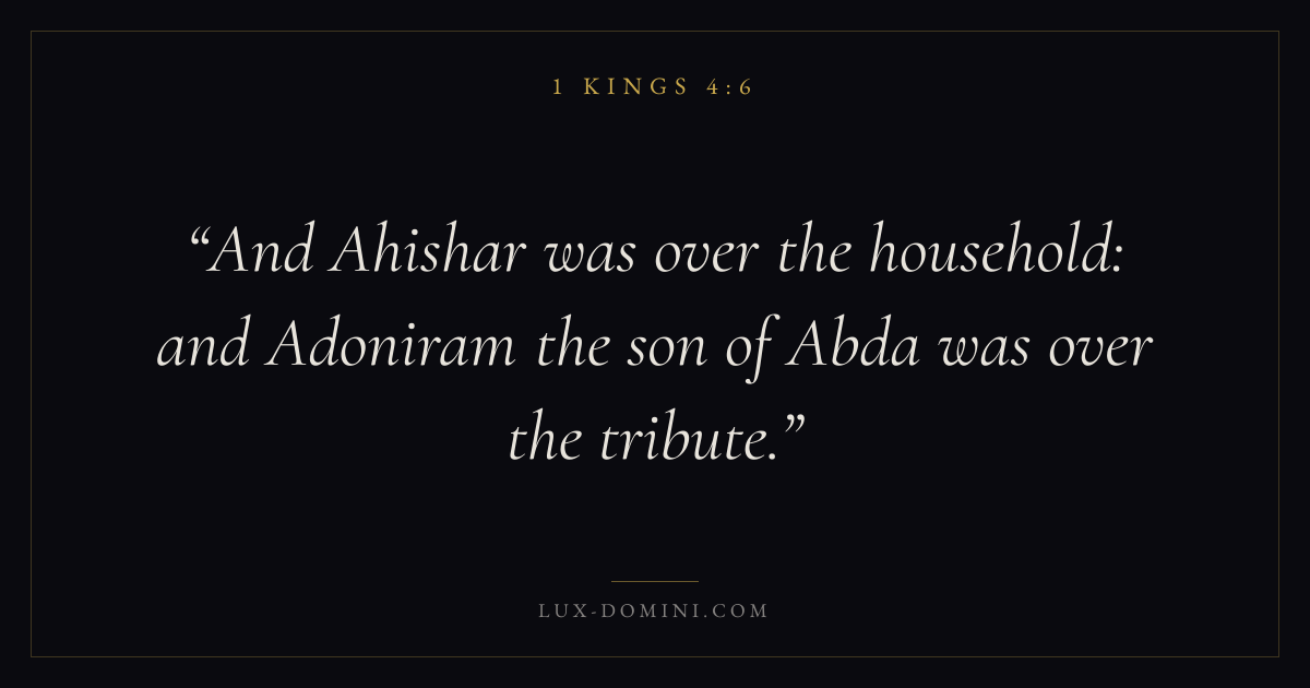 And Ahishar was over the household: and Adoniram the son of Abda was over the tribute.
