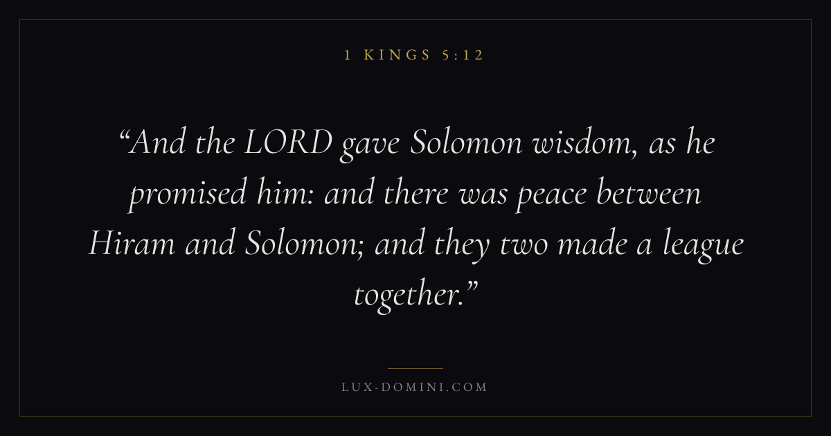 And the LORD gave Solomon wisdom, as he promised him: and there was peace between Hiram and Solomon; and they two made a league together.