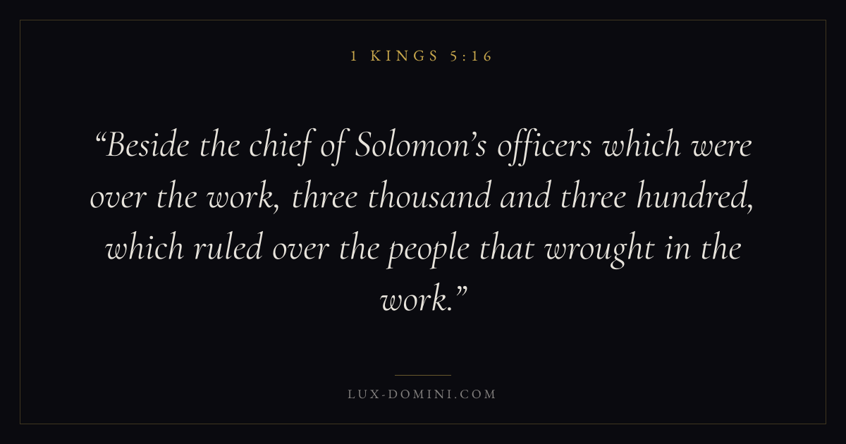 Beside the chief of Solomon’s officers which were over the work, three thousand and three hundred, which ruled over the people that wrought in the work.
