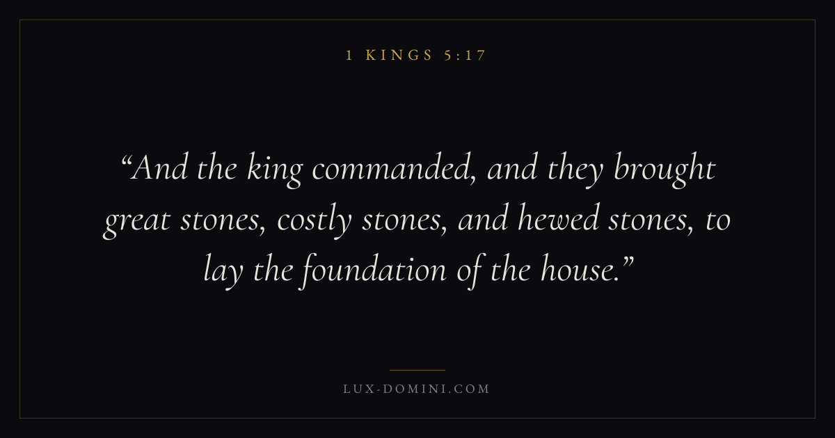 And the king commanded, and they brought great stones, costly stones, and hewed stones, to lay the foundation of the house.