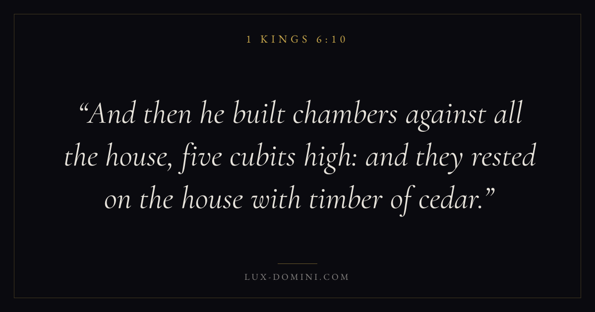 And then he built chambers against all the house, five cubits high: and they rested on the house with timber of cedar.
