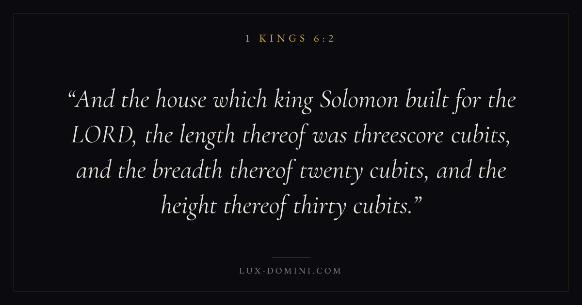 And the house which king Solomon built for the LORD, the length thereof was threescore cubits, and the breadth thereof twenty cubits, and the height thereof thirty cubits.