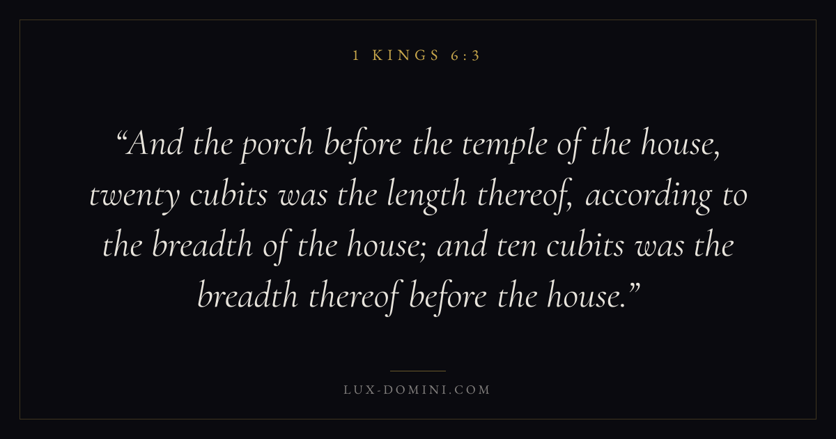 And the porch before the temple of the house, twenty cubits was the length thereof, according to the breadth of the house; and ten cubits was the breadth thereof before the house.