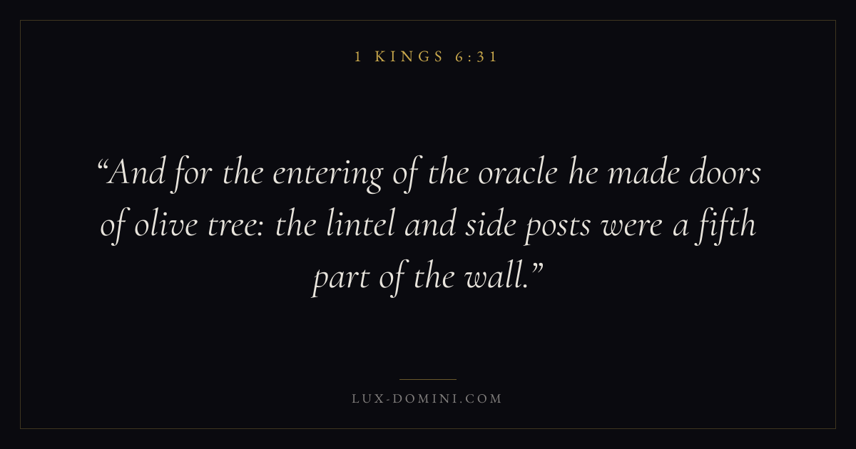 And for the entering of the oracle he made doors of olive tree: the lintel and side posts were a fifth part of the wall.