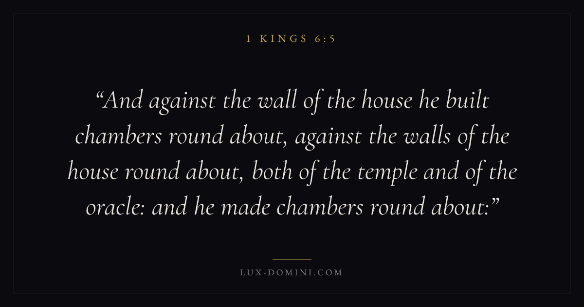 And against the wall of the house he built chambers round about, against the walls of the house round about, both of the temple and of the oracle: and he made chambers round about: