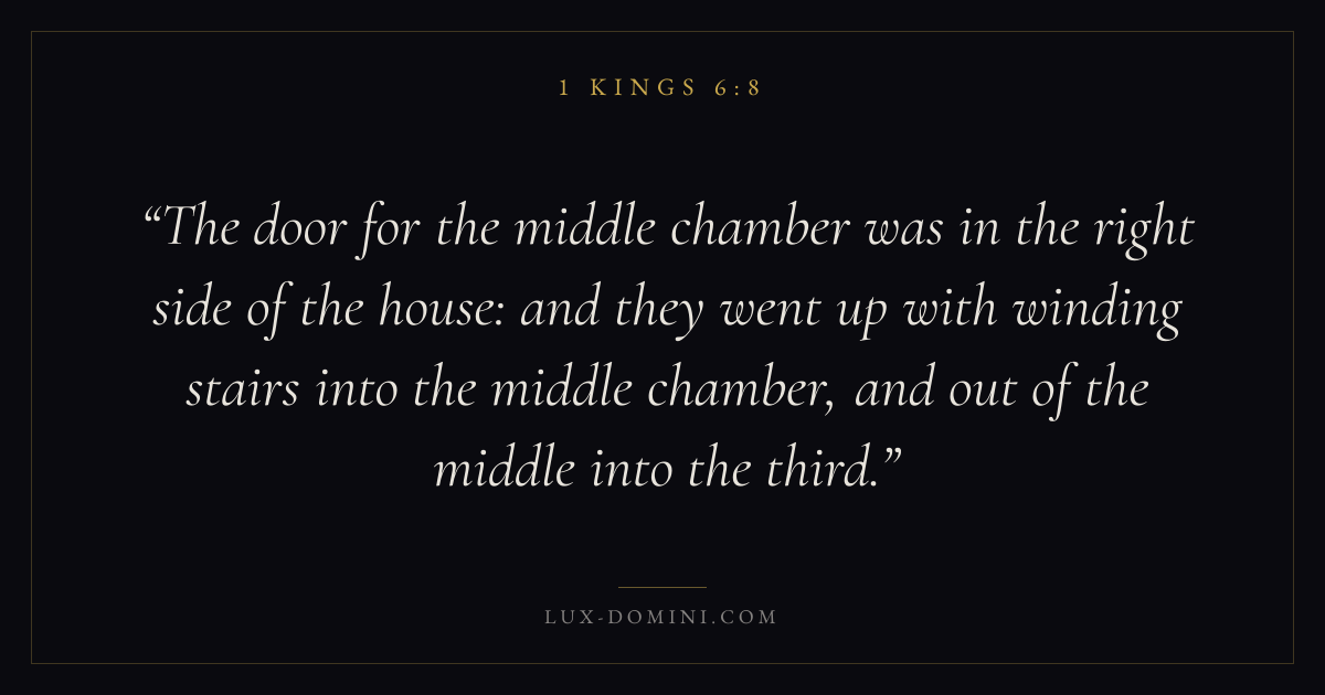 The door for the middle chamber was in the right side of the house: and they went up with winding stairs into the middle chamber, and out of the middle into the third.