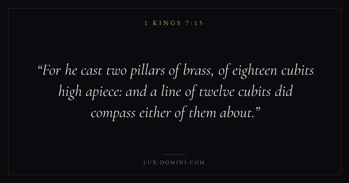 For he cast two pillars of brass, of eighteen cubits high apiece: and a line of twelve cubits did compass either of them about.