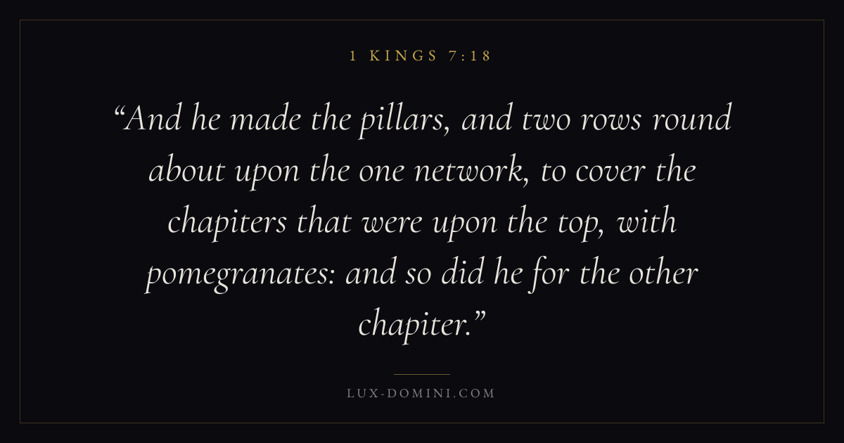 And he made the pillars, and two rows round about upon the one network, to cover the chapiters that were upon the top, with pomegranates: and so did he for the other chapiter.