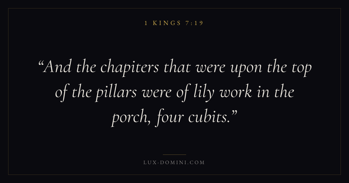 And the chapiters that were upon the top of the pillars were of lily work in the porch, four cubits.