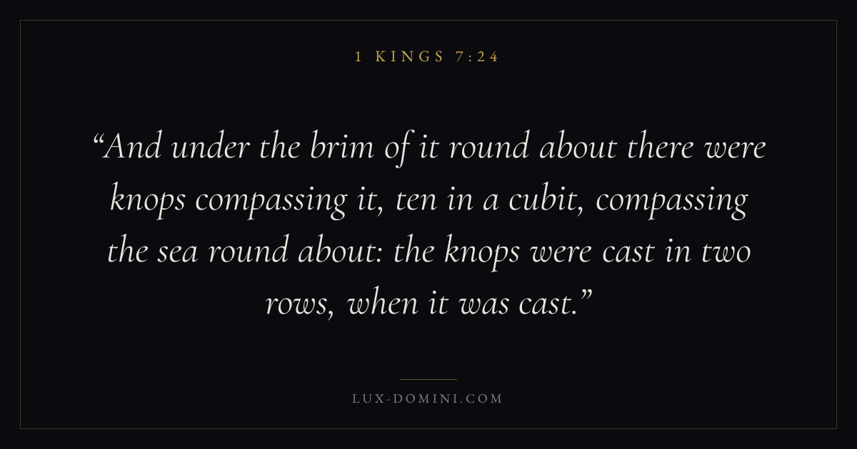 And under the brim of it round about there were knops compassing it, ten in a cubit, compassing the sea round about: the knops were cast in two rows, when it was cast.
