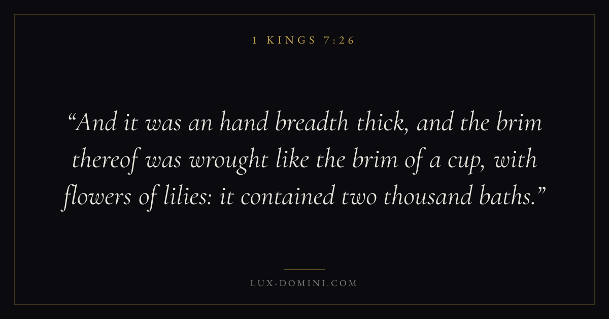 And it was an hand breadth thick, and the brim thereof was wrought like the brim of a cup, with flowers of lilies: it contained two thousand baths.