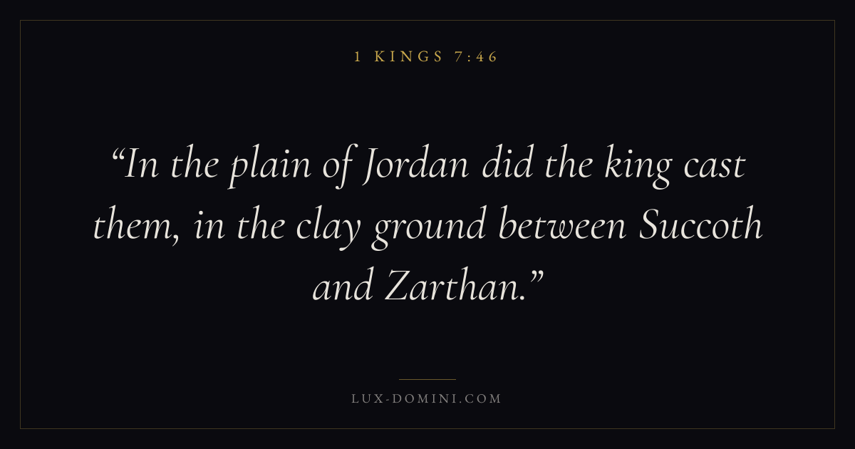 In the plain of Jordan did the king cast them, in the clay ground between Succoth and Zarthan.