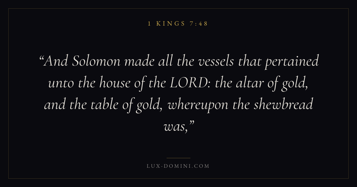 And Solomon made all the vessels that pertained unto the house of the LORD: the altar of gold, and the table of gold, whereupon the shewbread was,