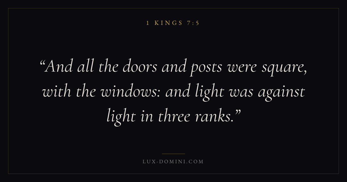 And all the doors and posts were square, with the windows: and light was against light in three ranks.