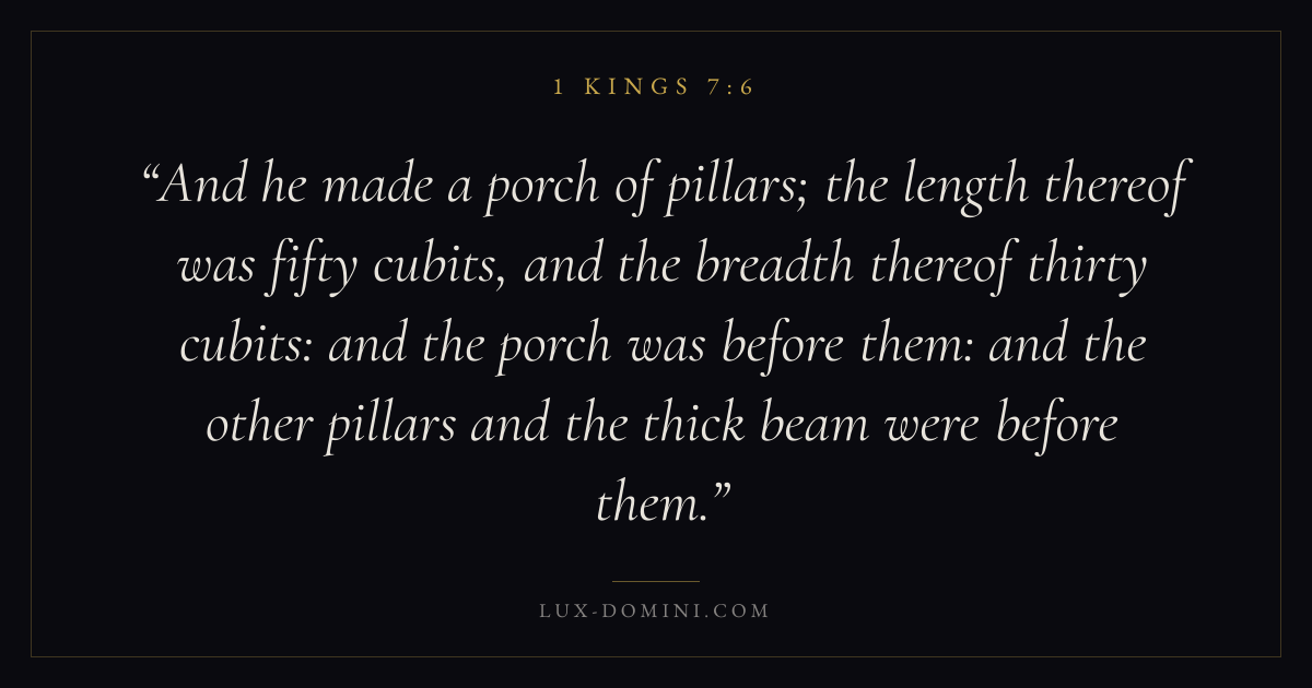And he made a porch of pillars; the length thereof was fifty cubits, and the breadth thereof thirty cubits: and the porch was before them: and the other pillars and the thick beam were before them.