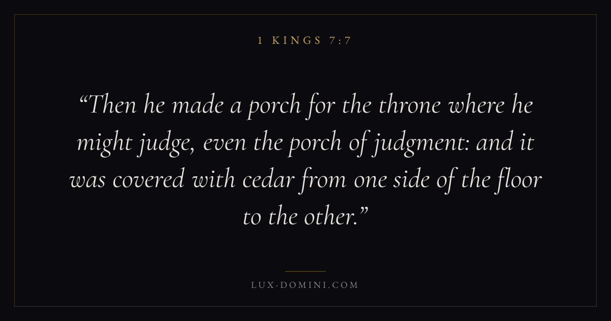 Then he made a porch for the throne where he might judge, even the porch of judgment: and it was covered with cedar from one side of the floor to the other.