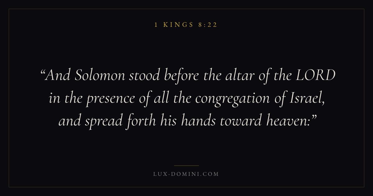 And Solomon stood before the altar of the LORD in the presence of all the congregation of Israel, and spread forth his hands toward heaven: