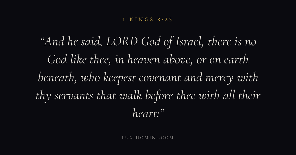 And he said, LORD God of Israel, there is no God like thee, in heaven above, or on earth beneath, who keepest covenant and mercy with thy servants that walk before thee with all their heart: