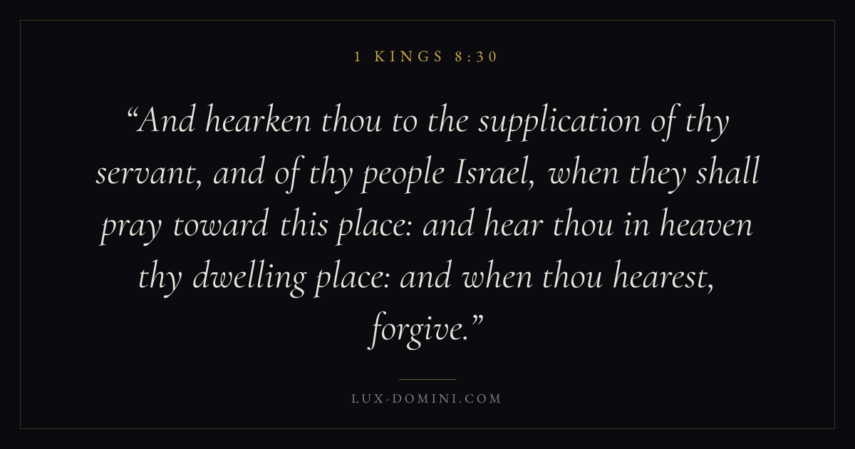 And hearken thou to the supplication of thy servant, and of thy people Israel, when they shall pray toward this place: and hear thou in heaven thy dwelling place: and when thou hearest, forgive.
