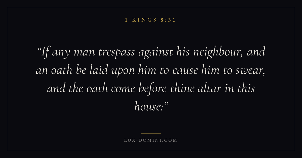 If any man trespass against his neighbour, and an oath be laid upon him to cause him to swear, and the oath come before thine altar in this house: