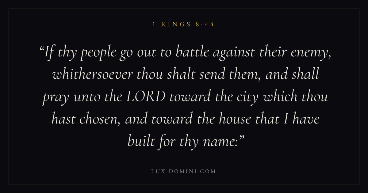 If thy people go out to battle against their enemy, whithersoever thou shalt send them, and shall pray unto the LORD toward the city which thou hast chosen, and toward the house that I have built for thy name: