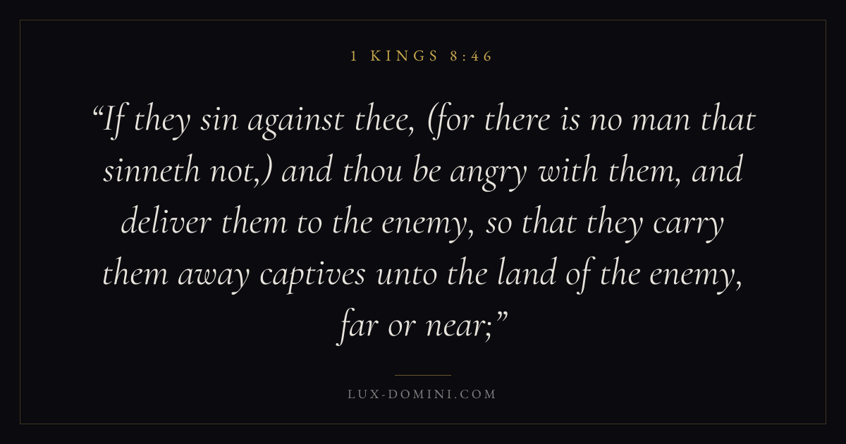 If they sin against thee, (for there is no man that sinneth not,) and thou be angry with them, and deliver them to the enemy, so that they carry them away captives unto the land of the enemy, far or near;