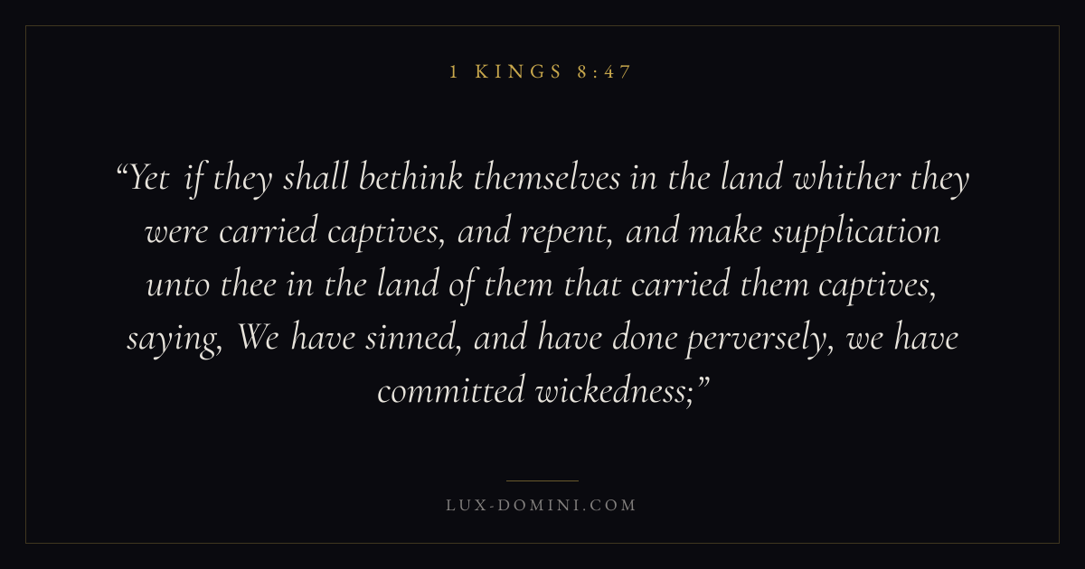 Yet if they shall bethink themselves in the land whither they were carried captives, and repent, and make supplication unto thee in the land of them that carried them captives, saying, We have sinned, and have done perversely, we have committed wickedness;
