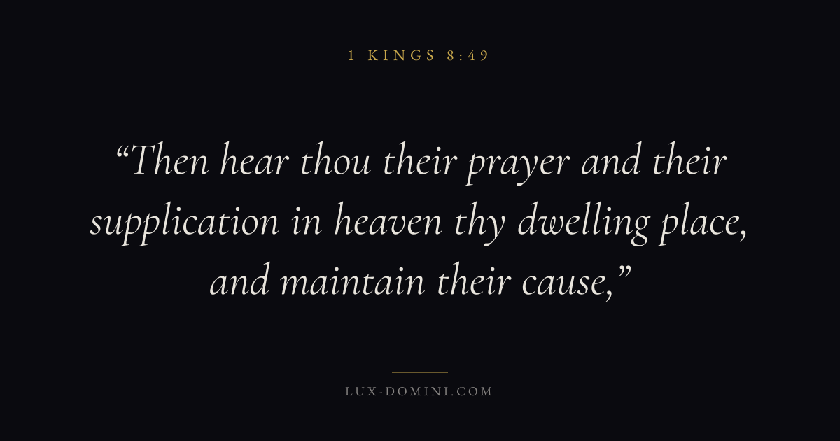 Then hear thou their prayer and their supplication in heaven thy dwelling place, and maintain their cause,