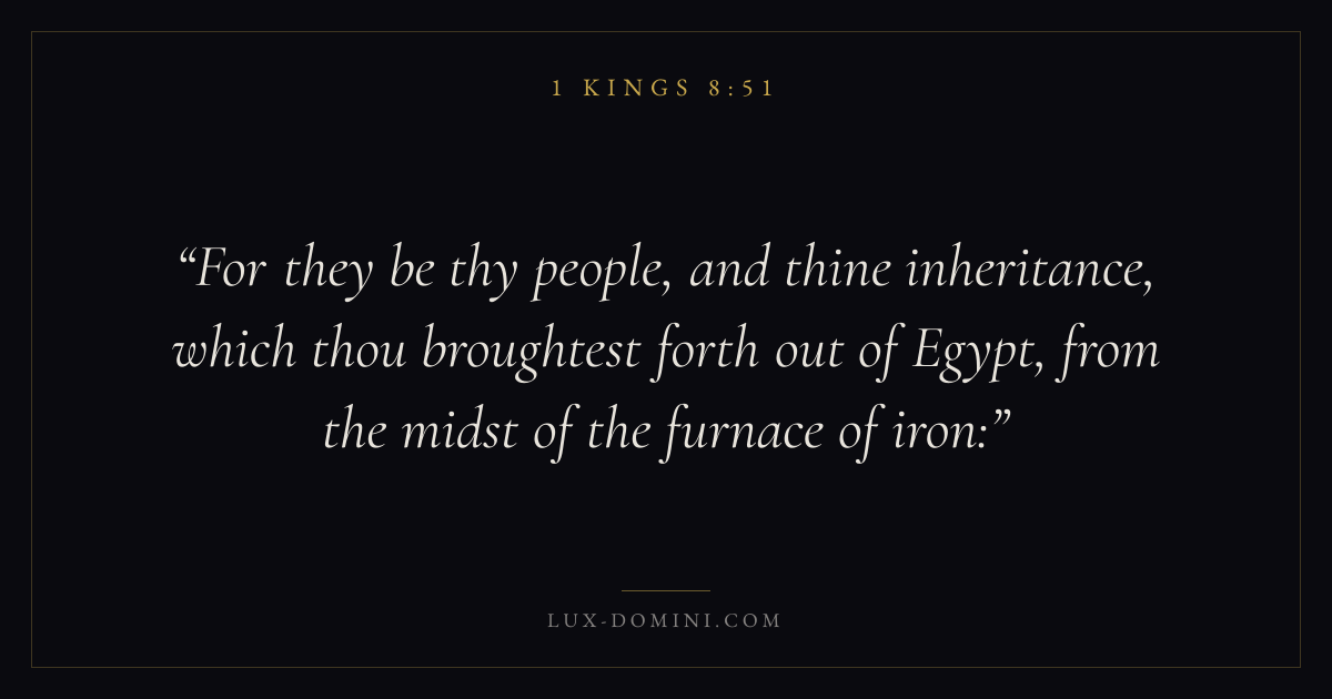 For they be thy people, and thine inheritance, which thou broughtest forth out of Egypt, from the midst of the furnace of iron: