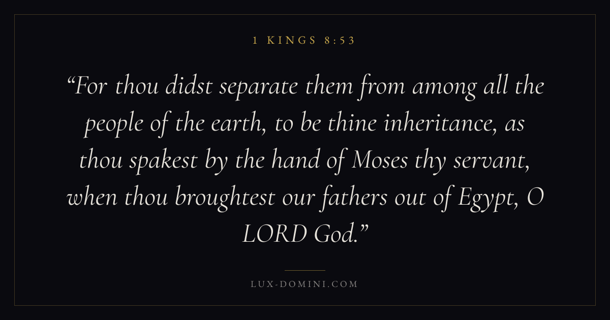 For thou didst separate them from among all the people of the earth, to be thine inheritance, as thou spakest by the hand of Moses thy servant, when thou broughtest our fathers out of Egypt, O LORD God.