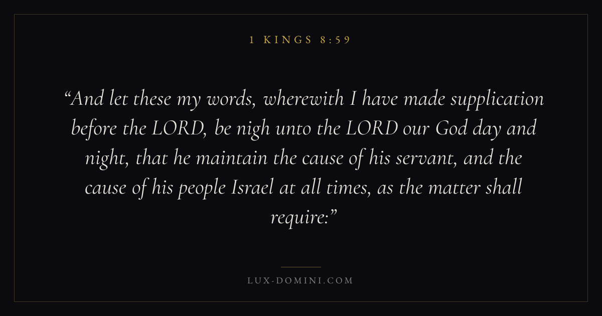 And let these my words, wherewith I have made supplication before the LORD, be nigh unto the LORD our God day and night, that he maintain the cause of his servant, and the cause of his people Israel at all times, as the matter shall require: