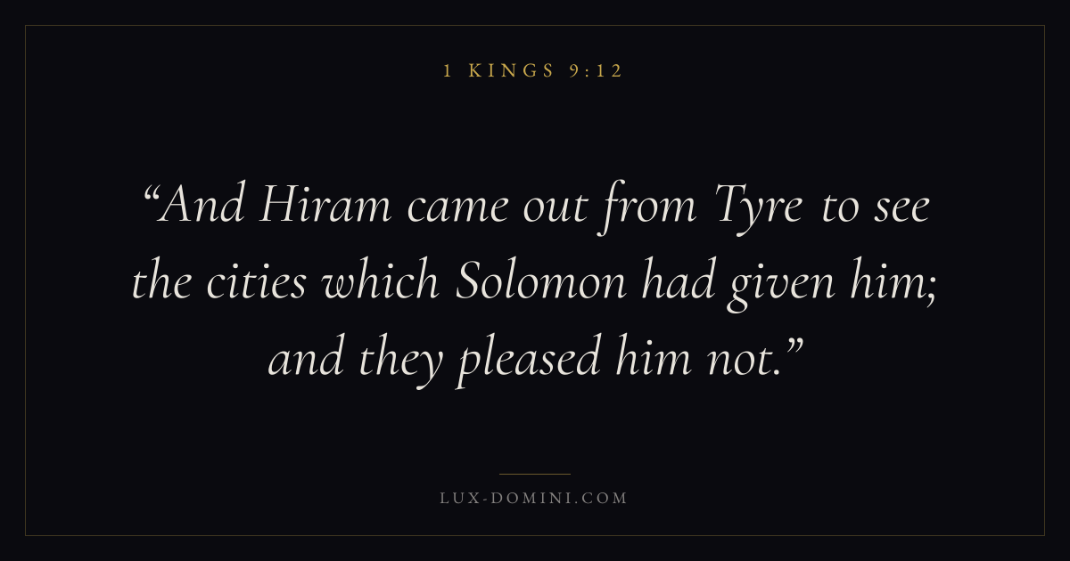 And Hiram came out from Tyre to see the cities which Solomon had given him; and they pleased him not.