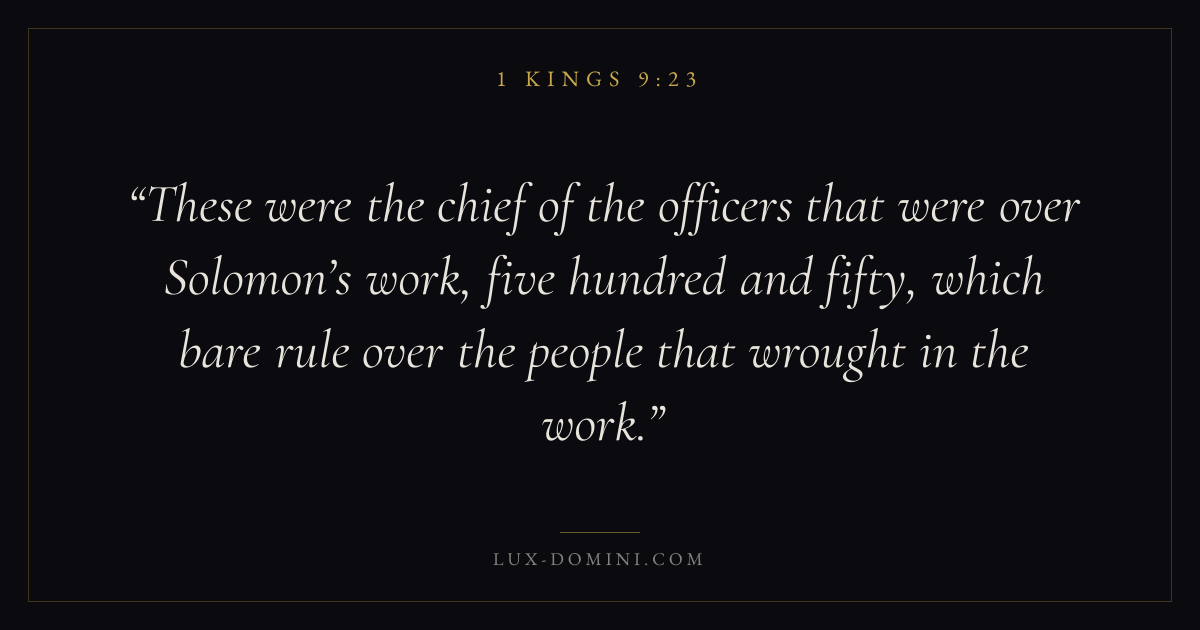 These were the chief of the officers that were over Solomon’s work, five hundred and fifty, which bare rule over the people that wrought in the work.
