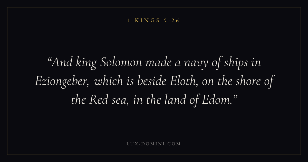 And king Solomon made a navy of ships in Eziongeber, which is beside Eloth, on the shore of the Red sea, in the land of Edom.