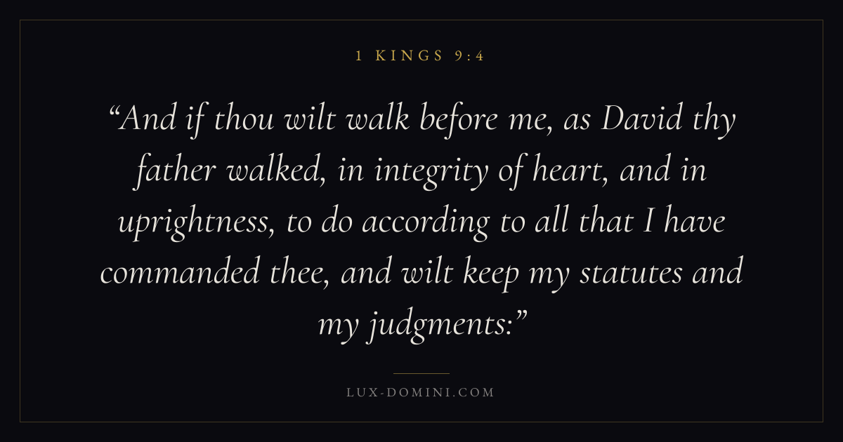 And if thou wilt walk before me, as David thy father walked, in integrity of heart, and in uprightness, to do according to all that I have commanded thee, and wilt keep my statutes and my judgments: