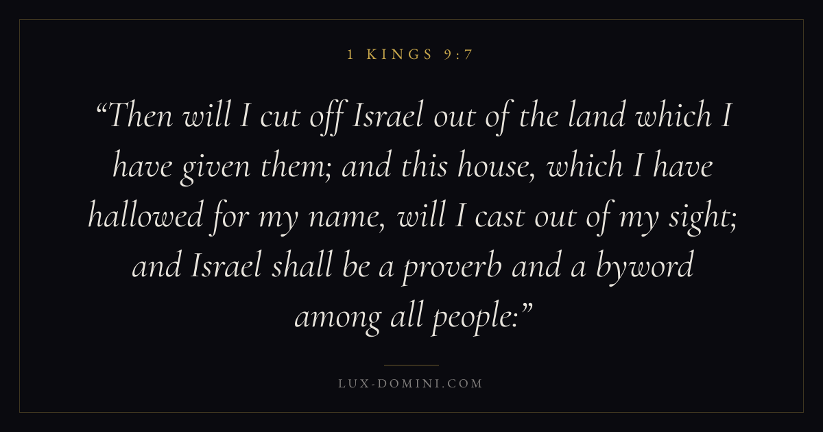 Then will I cut off Israel out of the land which I have given them; and this house, which I have hallowed for my name, will I cast out of my sight; and Israel shall be a proverb and a byword among all people: