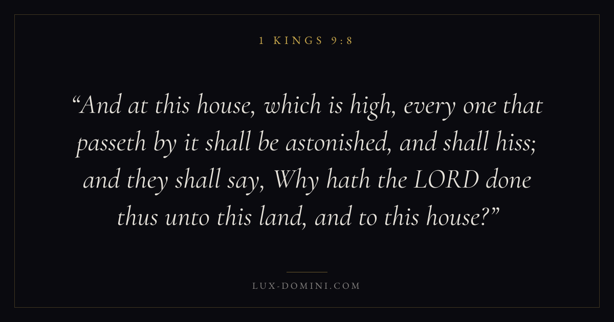 And at this house, which is high, every one that passeth by it shall be astonished, and shall hiss; and they shall say, Why hath the LORD done thus unto this land, and to this house?