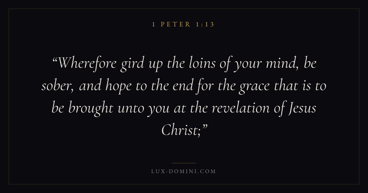 Wherefore gird up the loins of your mind, be sober, and hope to the end for the grace that is to be brought unto you at the revelation of Jesus Christ;