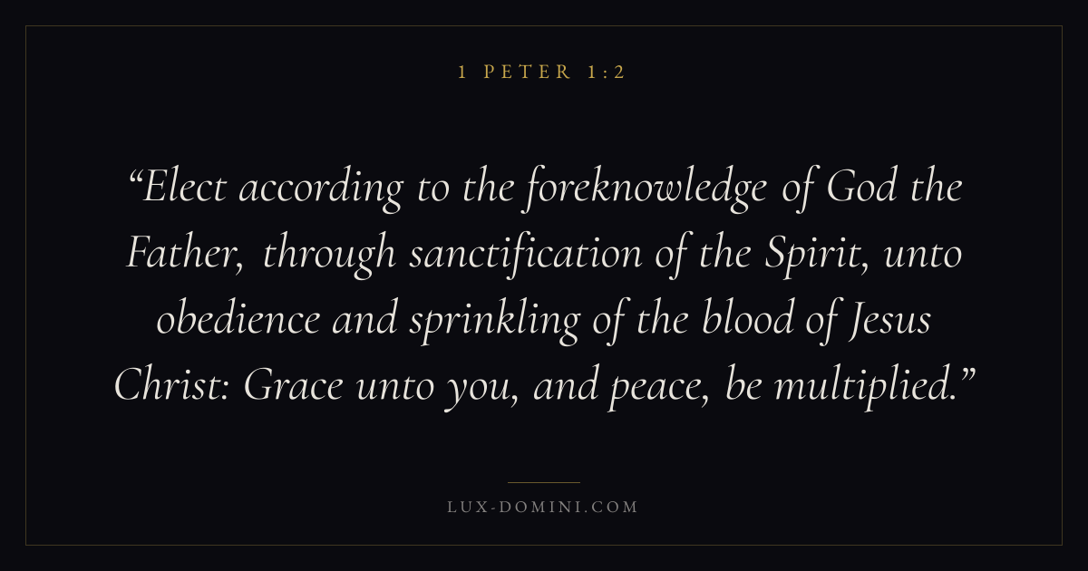 Elect according to the foreknowledge of God the Father, through sanctification of the Spirit, unto obedience and sprinkling of the blood of Jesus Christ: Grace unto you, and peace, be multiplied.