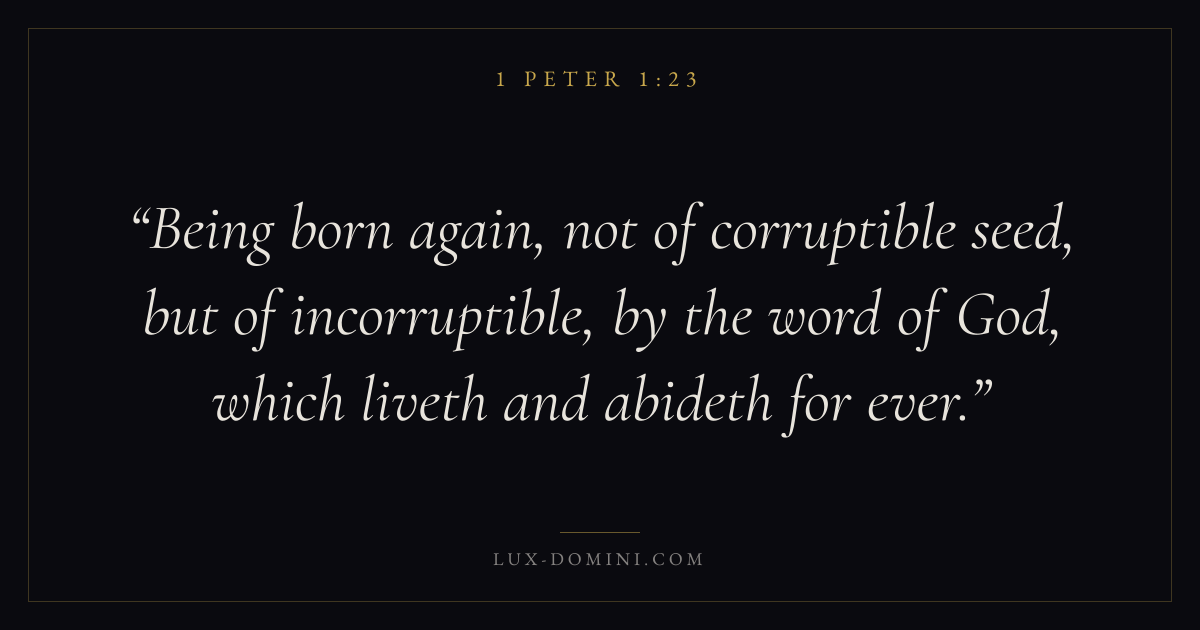 Being born again, not of corruptible seed, but of incorruptible, by the word of God, which liveth and abideth for ever.