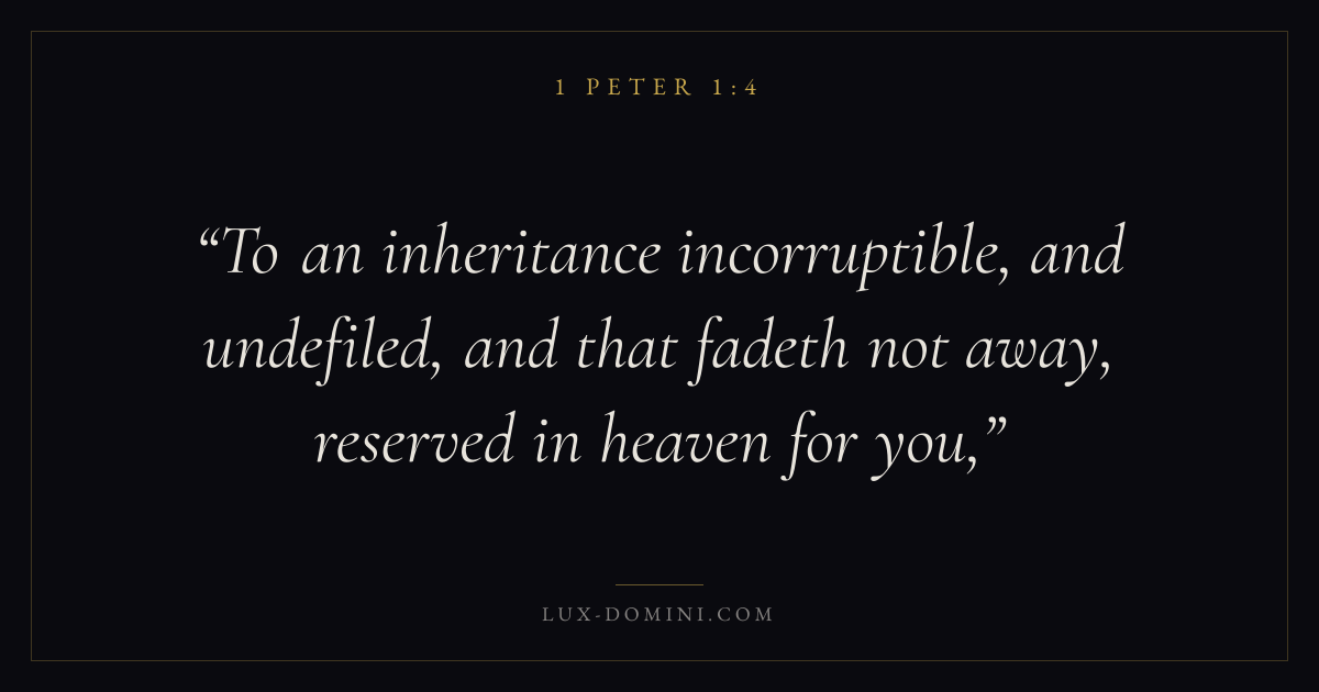 To an inheritance incorruptible, and undefiled, and that fadeth not away, reserved in heaven for you,