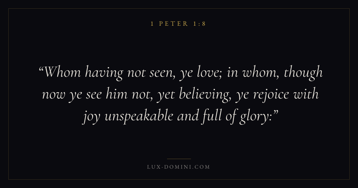 Whom having not seen, ye love; in whom, though now ye see him not, yet believing, ye rejoice with joy unspeakable and full of glory: