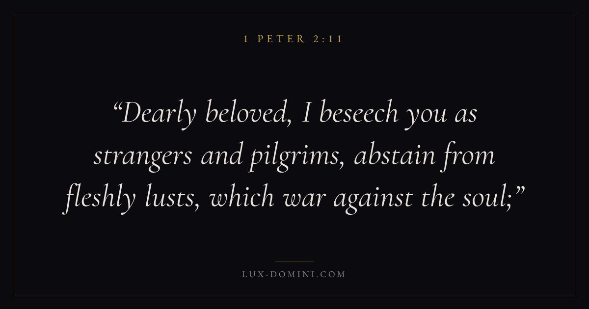Dearly beloved, I beseech you as strangers and pilgrims, abstain from fleshly lusts, which war against the soul;