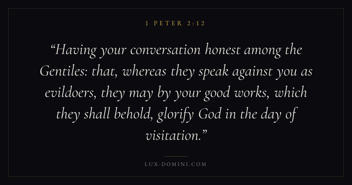 Having your conversation honest among the Gentiles: that, whereas they speak against you as evildoers, they may by your good works, which they shall behold, glorify God in the day of visitation.
